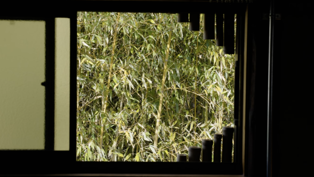 昼には竹の影が床に静かな模様を落とします。